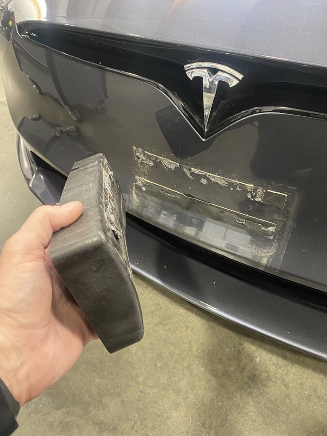 - Peel adhesive backing from new license plate bracket