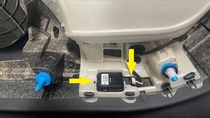 - LH 후면 도어 퍼들 라이트를 LH 후면 도어 트림 패널에 위치시키고 전기 커넥터를 연결한 다음 퍼들 라이트를 트림 패널에 장착합니다.