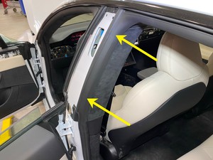 B필러에 남아있는 부스러기를 제거한 후 IPA 천을 사용하여 차체를 청소합니다.