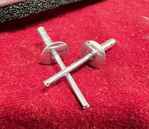 LH 후면 상단 측면 B필러 캐리어를 차량에 배치한 다음 캐리어를 차체에 고정시키는 리벳(2개)을 장착합니다.