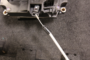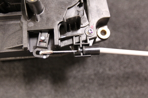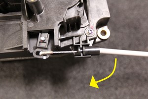- 수동 해제 케이블의 금속 끝을 충전 포트 액추에이터 암 개방구 밖으로 돌려 밀어냅니다.