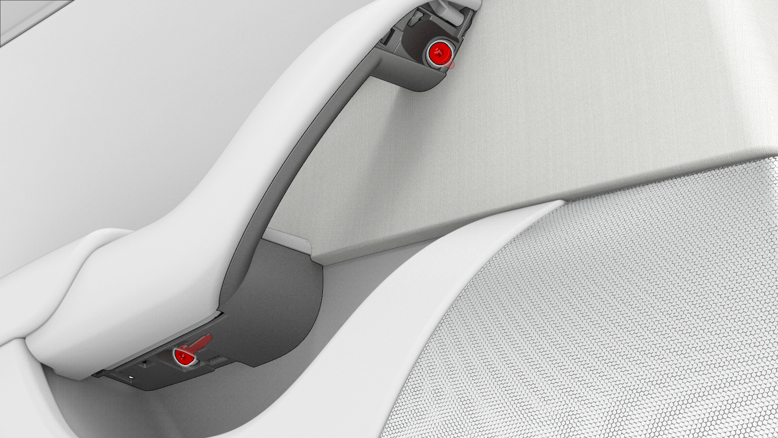 | 암레스트 아래 LH 후면 도어 패널과 도어 트림 핸들을 도어 패널 어셈블리에 고정하는 볼트 |