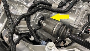 - 커넥터 회색 잠금 탭을 풀어준 다음 후면 오일 펌프 커넥터에서 후면 서브프레임 전기 하네스를 연결 해제합니다.