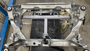 - 새 후면 서브프레임을 서브프레임 리프트에 장착하고 스트랩을 사용하여 제자리에 고정합니다.