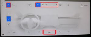 HVAC를 켭니다. AC를 끄고 블로워 속도를 10으로 설정합니다. 온도를 HI로 설정하고 10분간 실행합니다.