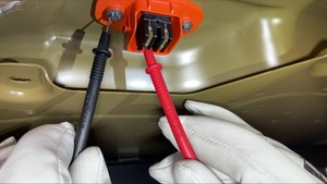 참고멀티미터를 DC 전압으로 설정합니다. LV 배터리를 테스트하여 멀티미터가 전압을 올바르게 측정하는지 확인하십시오. 가볍게 터치하고 단자를 손상시키지 마십시오.