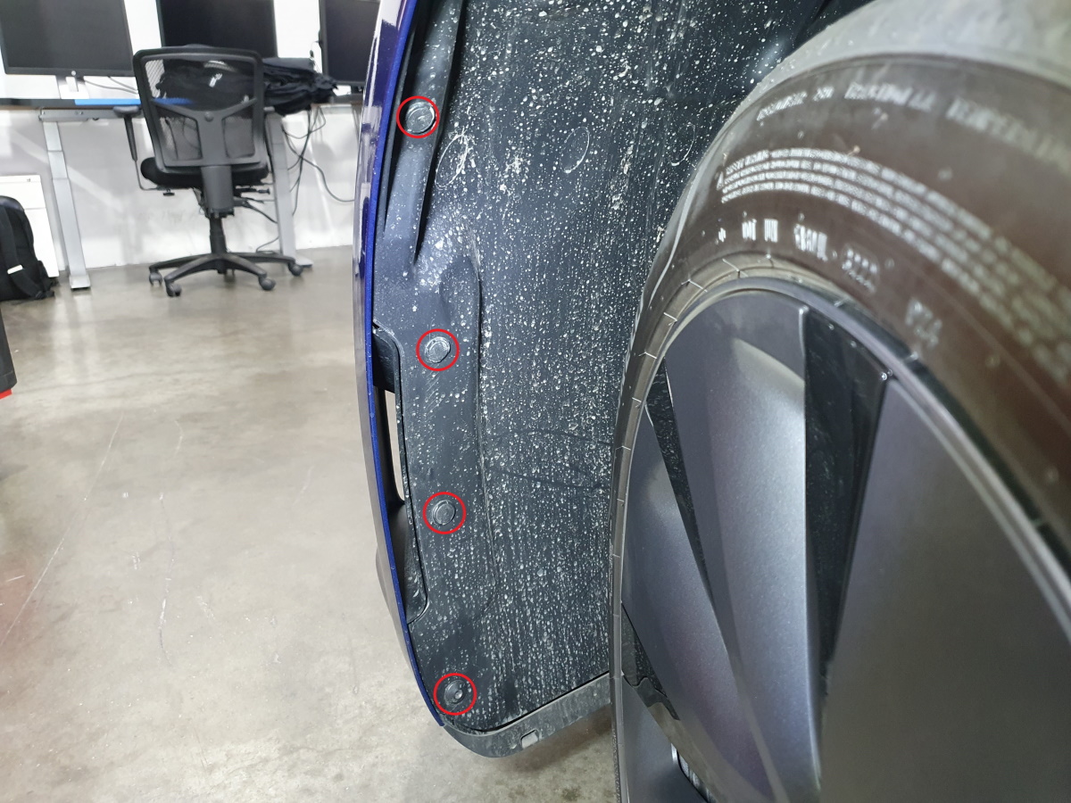 참고최신 차량에는 휠 아치 라이너의 전면 하단 모서리에도 제거해야 하는 T30 볼트(토크 2Nm)가 있습니다.