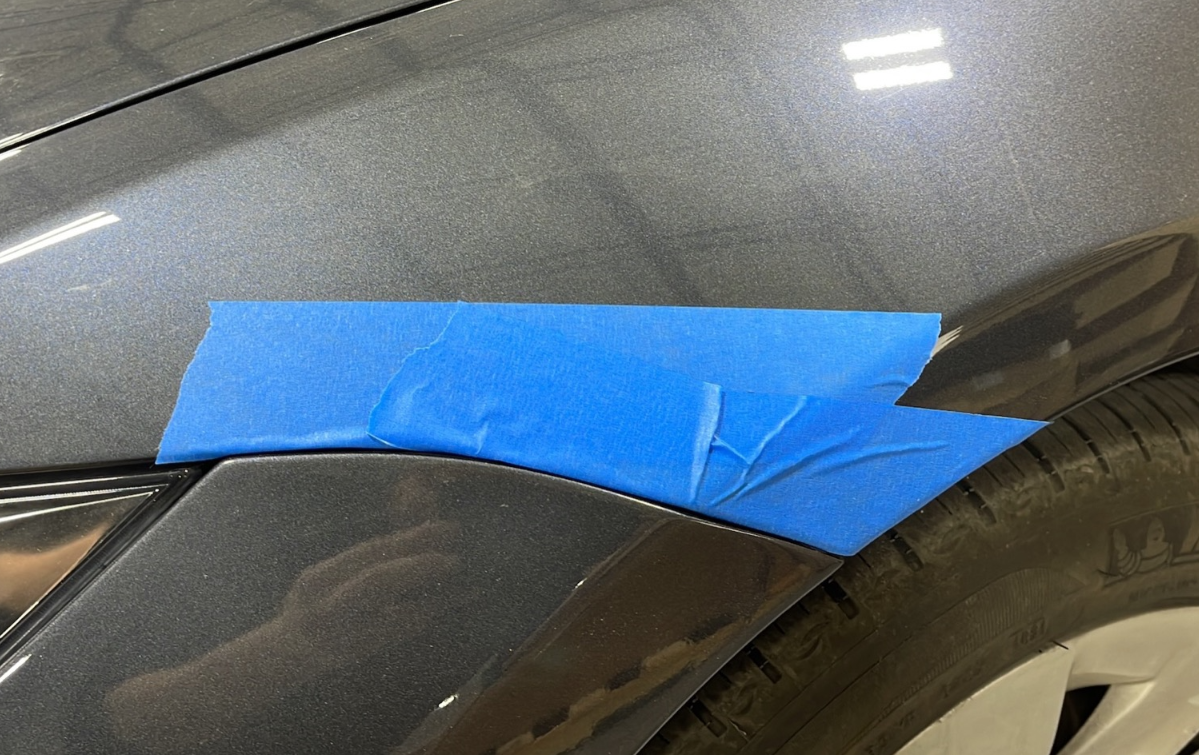 전면 페시아에 인접한 LH 및 RH 프런트 펜더 가장자리에 보호 테이프를 부착합니다.