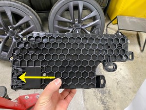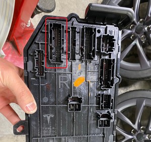 - 클립 프라이툴을 사용하여 하네스 커넥터를 RH 차체 컨트롤러 모듈에 고정하는 클립(2개)을 풉니다.