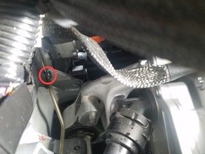 - 파이프의 뒤쪽 끝을 스티어링 컬럼 아래, 차체 주물 위로 가져옵니다.