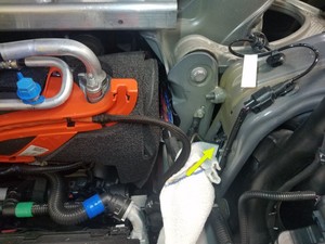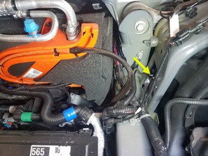 LV 배터리를 차량에 고정하는 볼트(3개)를 탈거한 다음 배터리를 옆으로 옮깁니다.