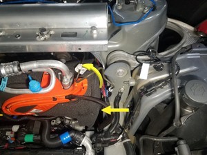 - 멀티 시스템 빔과 AC 컴프레서 사이의 차량 전면으로 파이프를 가져온 다음 파이프를 수직 위치로 기울입니다.