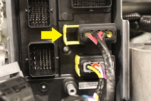 참고잠금 전기 커넥터 1개, 하네스를 슈퍼매니폴드에 고정합니다. 잠금 탭을 체결합니다.