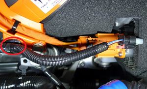 LH RDU HV 하네스를 배터리 팩에 고정합니다.