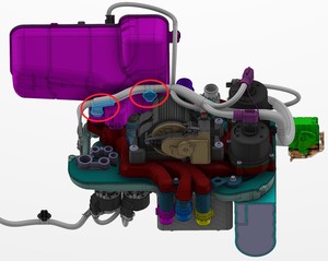 PT 냉각수 펌프, 칠러 펌프 및 옥토밸브에 서멀 하네스를 장착합니다.