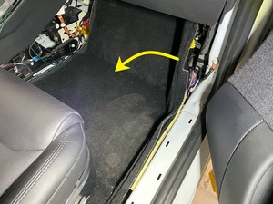 - 전면 동승석 바닥 매트를 탈거합니다.