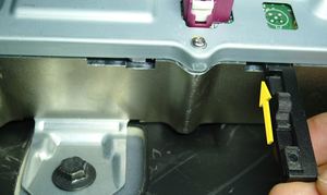- 동승석 발밑 공간 커버를 탈거합니다. 참조 항목: 커버 - 발밑 공간 - 동승석(탈거 및 교체).