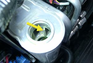 - 니들 노즐 플라이어를 사용하여 어큐뮬레이터에서 제습제 카트리지를 탈거합니다.