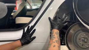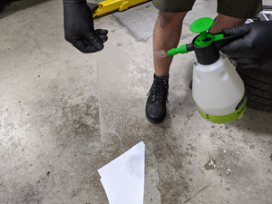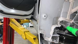 슬립 용액으로 LH 후면 쿼터 패널 부위를 적십니다.