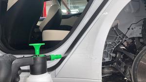 참고차체에 밀착되도록 접착 용액을 분사하십시오.참고도색 보호 필름을 부착한 후 24시간 동안 차량을 세차하지 마십시오.