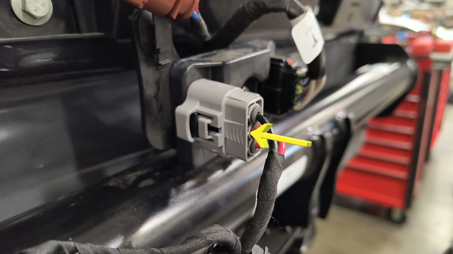 - LH 차체 하네스 커넥터를 트레일러 히치 어셈블리 ECU에 연결합니다.