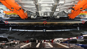 - 밸런스를 누른 상태에서 후면 서브프레임에 후면 번들을 고정하는 클립(3개)을 조입니다.