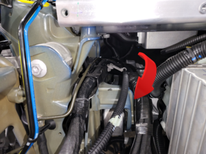 - 에어 서스펜션 후면 번들을 RH 전면 휠 하우스에 고정하는 클립(3개)을 풉니다.