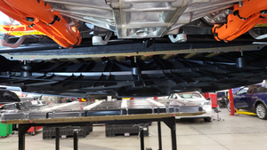 - 차량을 2포스트 리프트에 올리고 지지합니다. 참조 항목: 차량 올리기 - 2 포스트 리프트.