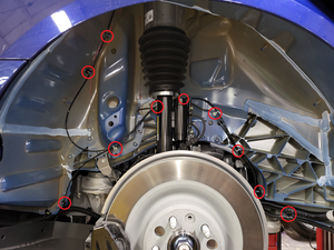 - 에어 서스펜션 후면 번들을 RH 후면 휠 하우스에 고정하는 클립(10개)을 풉니다.