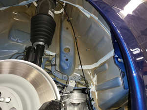 참고에어 라인을 하네스를 통해 휠 하우스로 유도한 다음 에어 라인을 휠 하우스에 고정합니다.