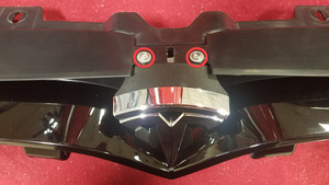 - 전면 페시아 어셈블리에 T 배지 지지대를 장착합니다.