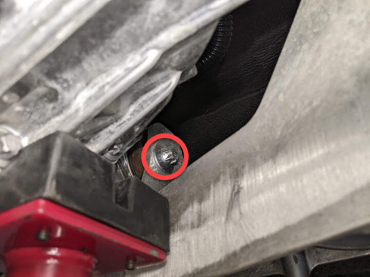 후륜 구동 장치의 후면을 후면 서브프레임에 고정하는 볼트를 탈거합니다.