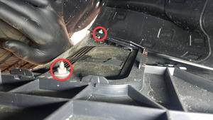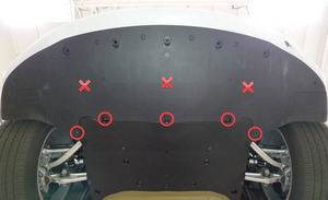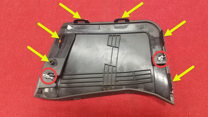 拆下将左侧前饰板导流板固定到裙板和前饰板上的螺母(2 个)。3 Nm (2.2 lbs-ft)
