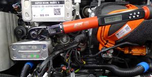 将液冷冷凝器切断阀放在车辆上,然后将该阀安装在超级歧管上。19 Nm (14.0 lbs-ft)注安装前,使用 ND-11 机油润滑阀螺纹和 O 型环。首先用手将该阀完全拧入超级歧管中,然后按扭矩规格拧紧。提示: 推荐使用以下工具: