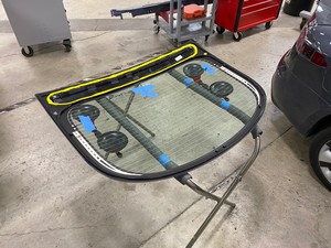 使用异丙醇 (IPA) 湿巾清洁掀背尾门玻璃上的聚氨酯路径。