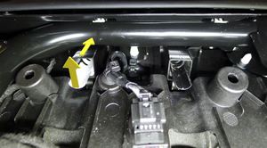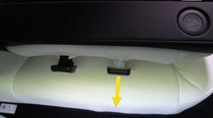 - 提起第二排头枕导向锁的锁片,然后将导向锁从座椅框架总成中滑出。