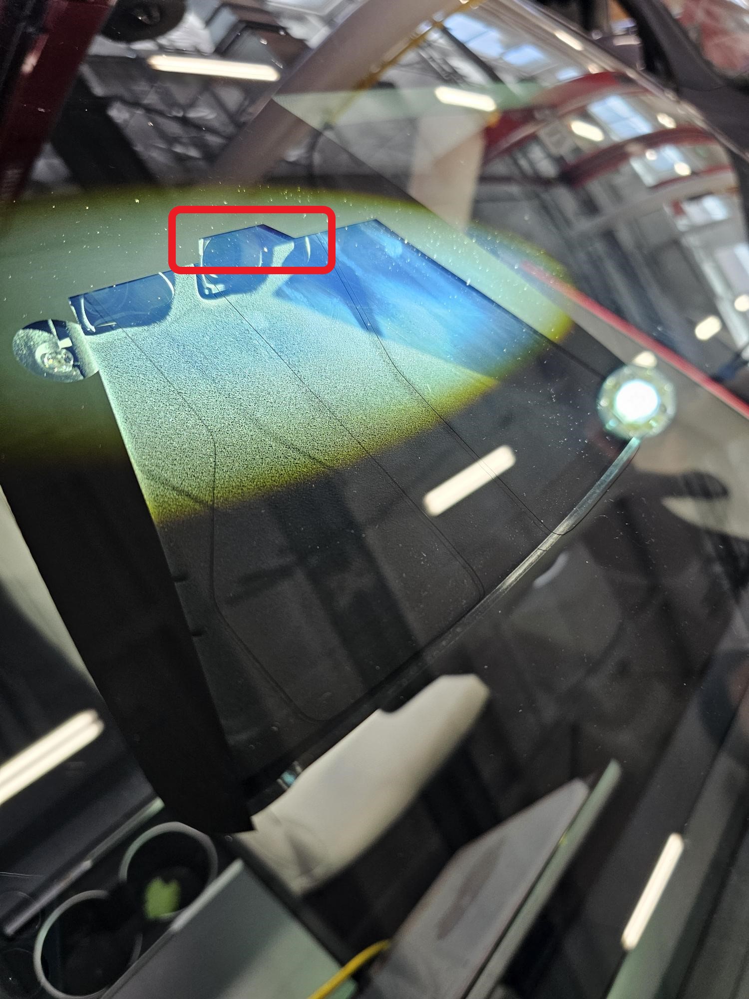 - 重复步骤3。使用 LED 手电筒再次检查挡风玻璃内侧。如果存在模糊点、起雾、污点或残屑,请重新清洁挡风玻璃和摄像头镜片。