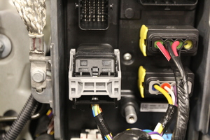 固定前车身控制器模块的左侧锁定连接器。