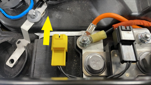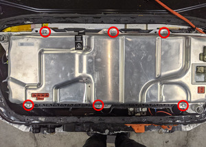 拆卸将前检修板固定到高压电池总成的紧固件。