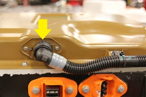 将功率转换系统出口软管从高压电池上断开。