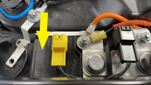 分离高压电池前检修板密封胶,以便进行拆卸。