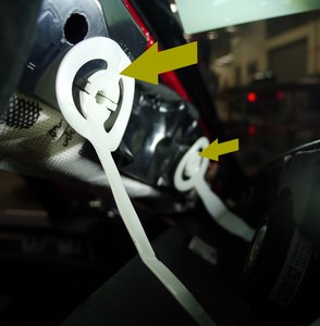 - 将系带(2 根)固定到车身侧。