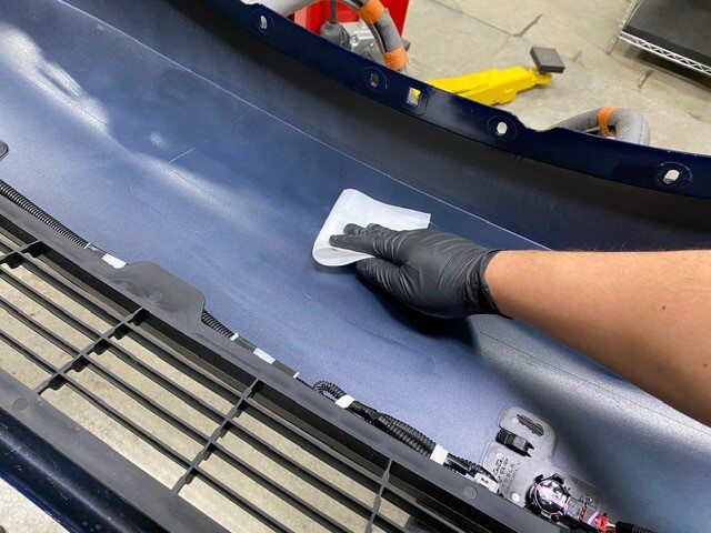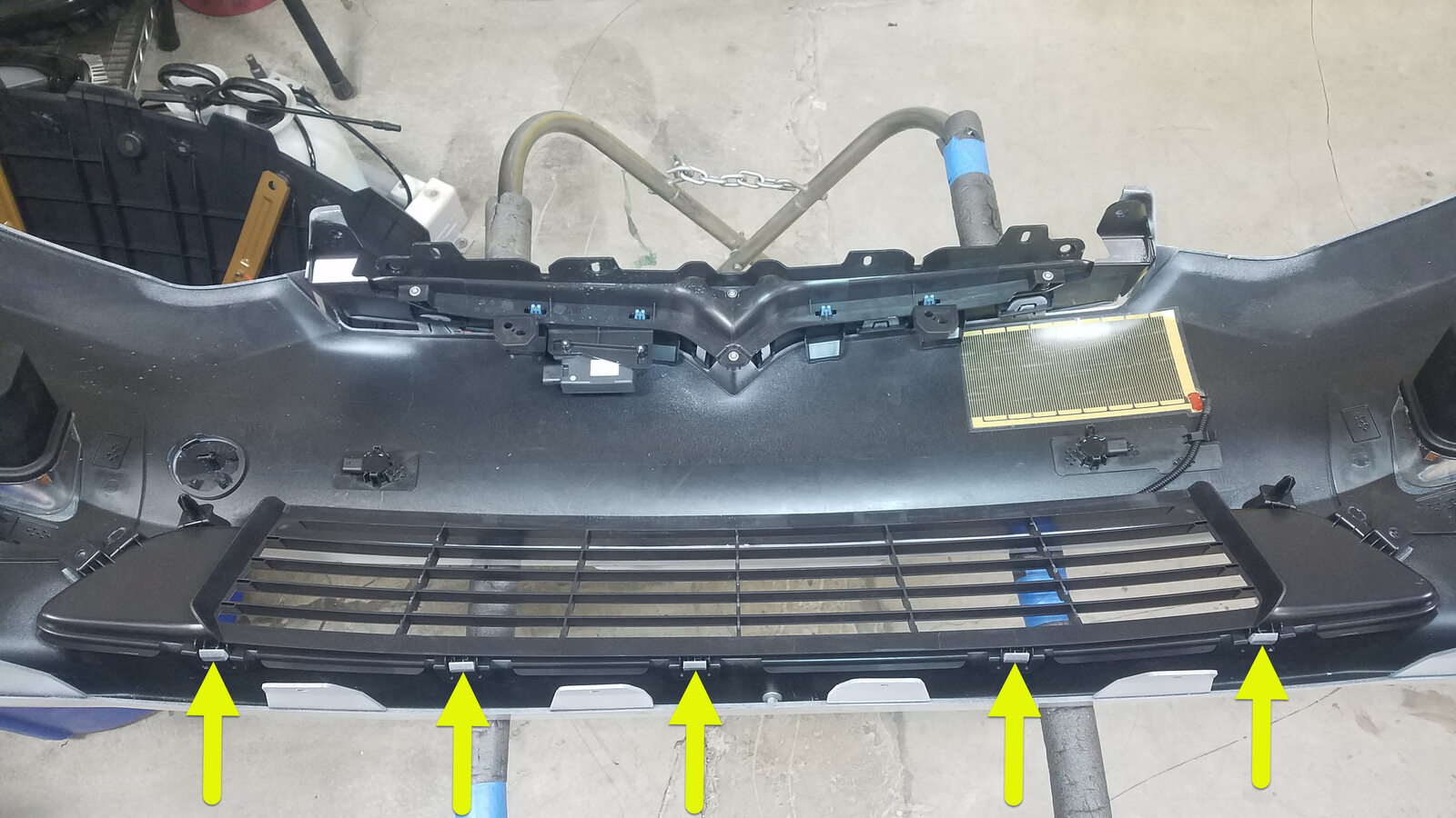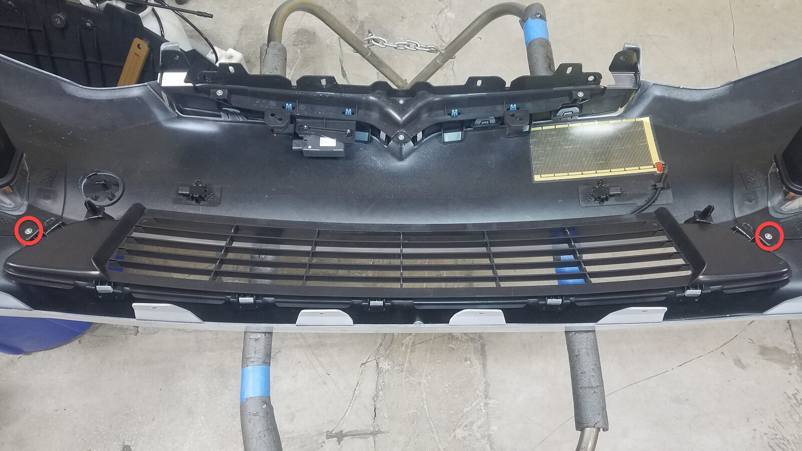 - Put the new front fascia assembly on a padded workbench.
