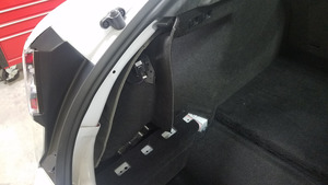 - 将左侧行李箱侧饰板向前推,然后固定侧围板后方的饰板。