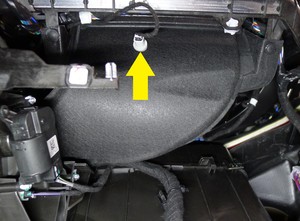 - 将副驾位仪表板风管放置在车辆上,然后安装将风管固定到仪表板的铆钉(2 个)。
