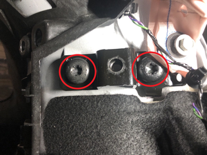 - 将卡子固定到第二排左侧座椅安全带支架上。