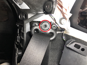 - 从第二排左侧座椅安全带支架上松开卡子。