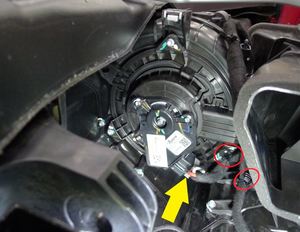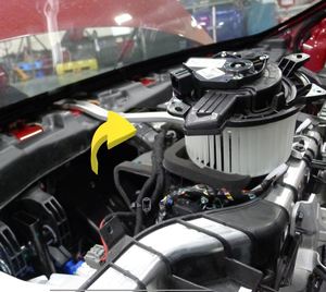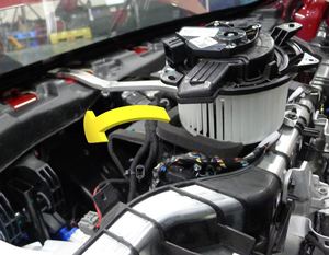 注向下绕 HVAC 总成转动鼓风机电机。