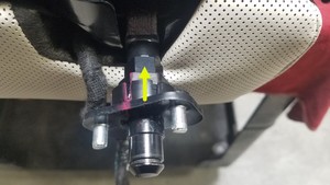 - 逆时针旋转第二排右侧座椅靠背枢轴套,将其从第二排右侧枢轴静环中松开。