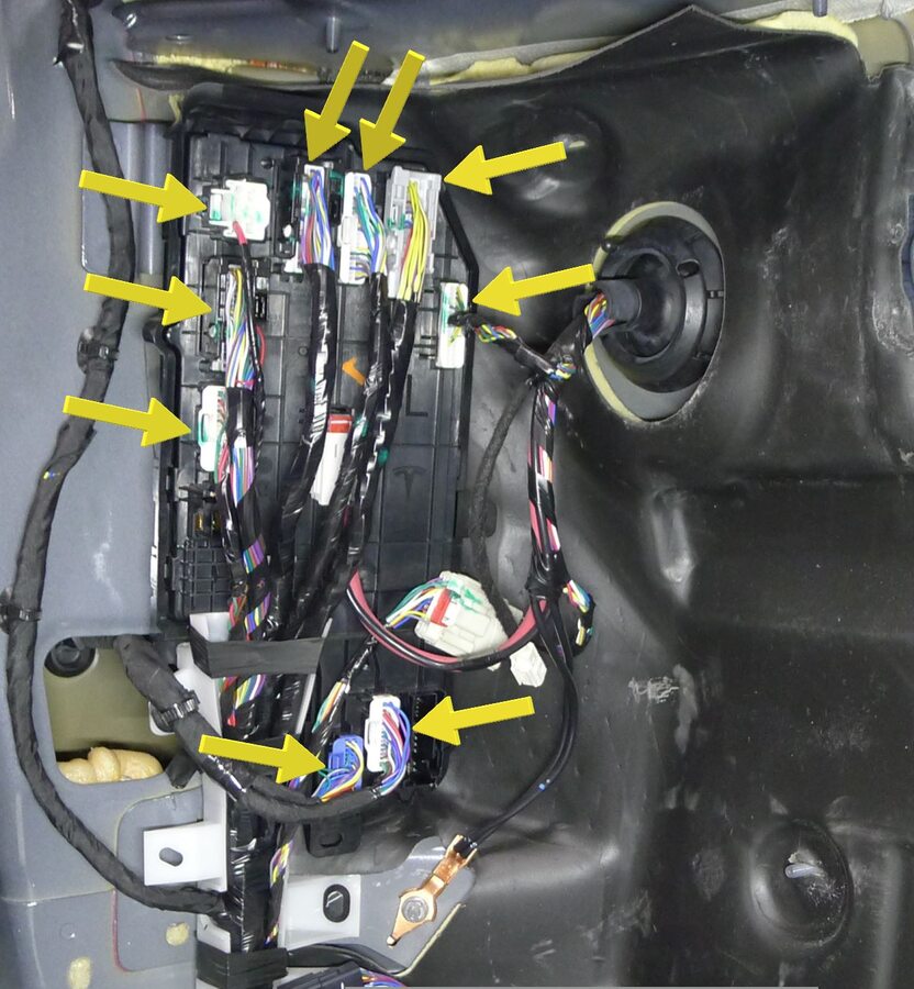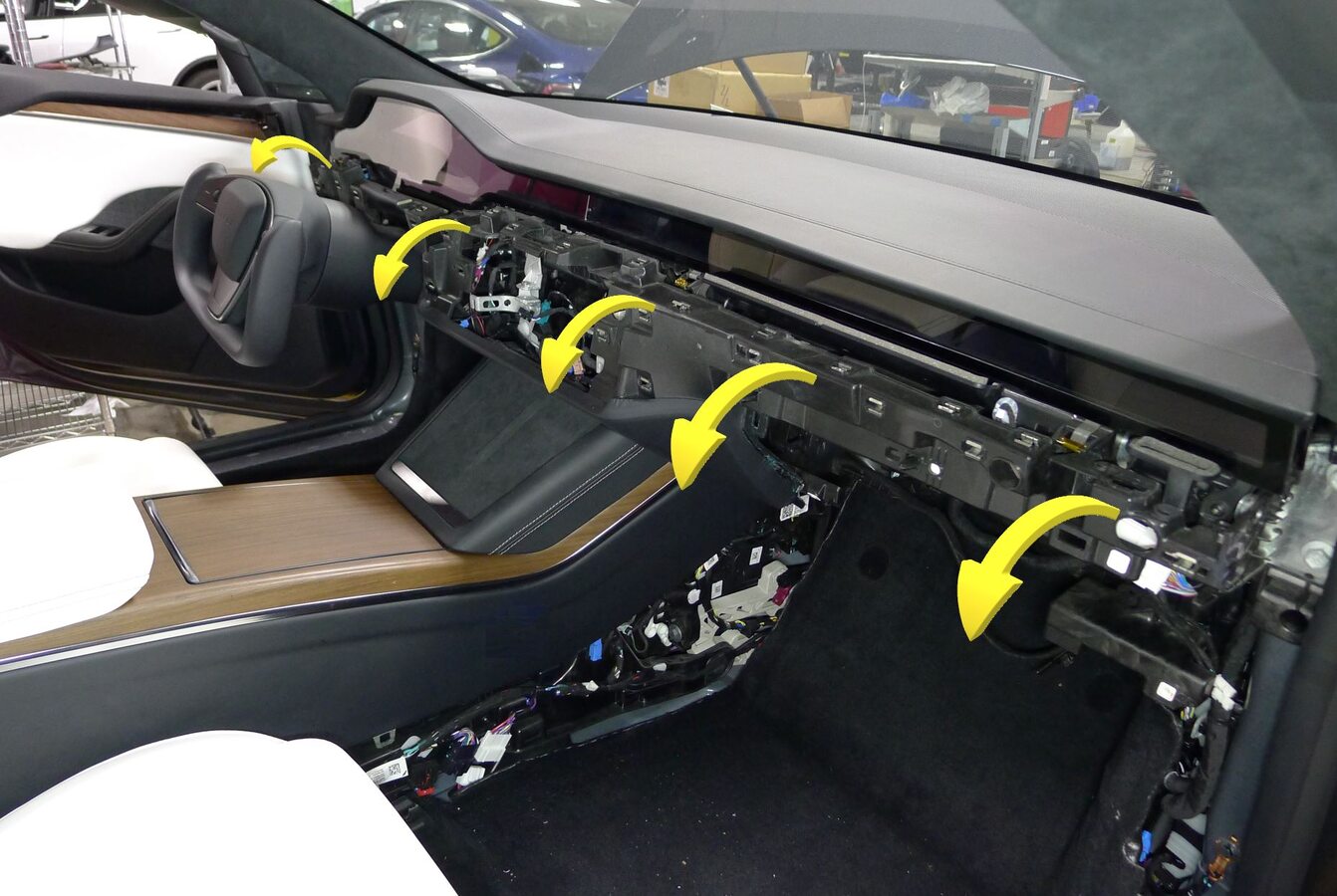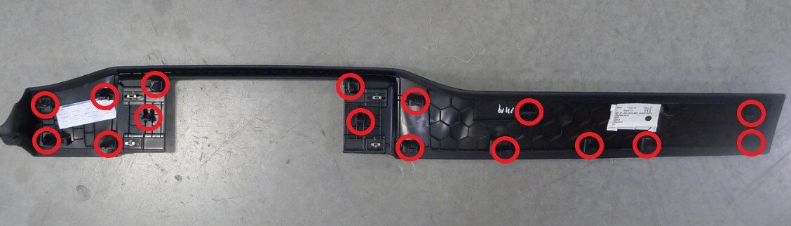 注21x clips, 6x datums, 4x connectors, Release each IP decor connector clip from IP carrier then disconnect from IP harness
